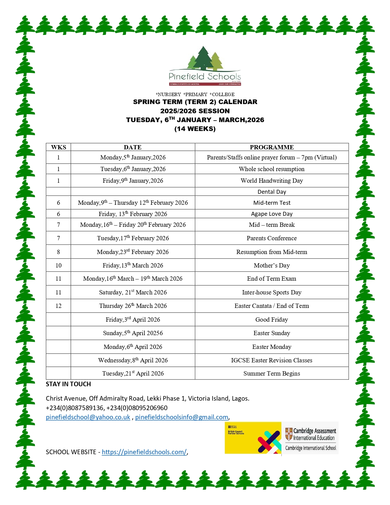 Spring Academic Session resumes Tuesday, 6th January 2026 and ends March 2026